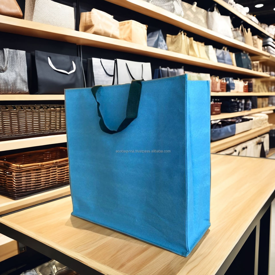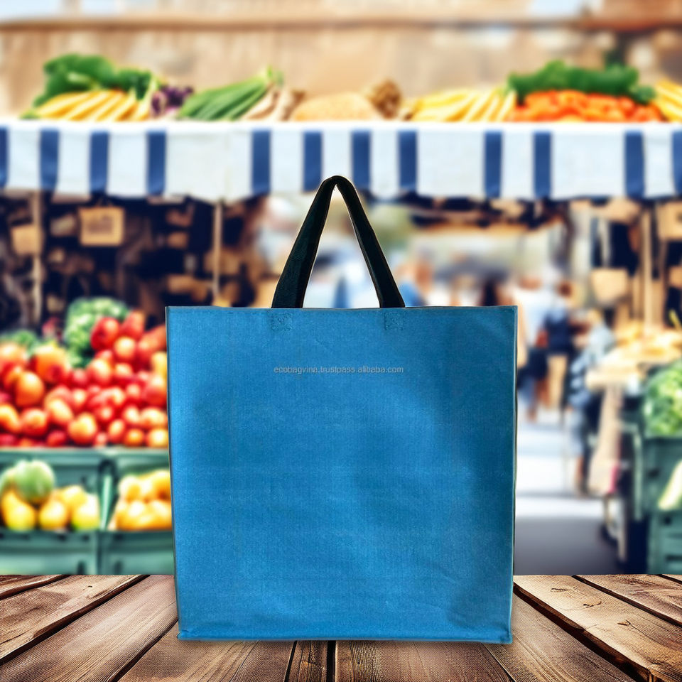 Custom Logo Reusable Non-Woven Tote Bag PP Webbing Handles Shoulder Strap Medium Size Made Hung Yen Vietnam ECOBAG VINA for