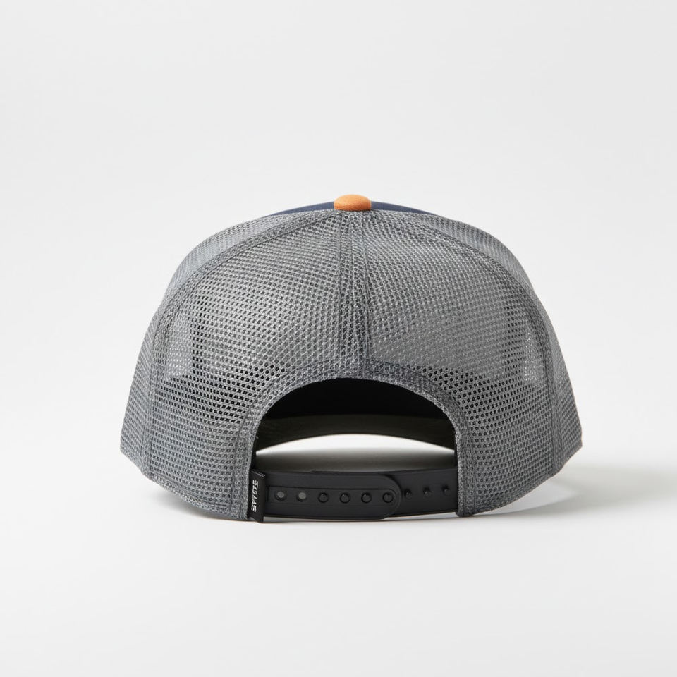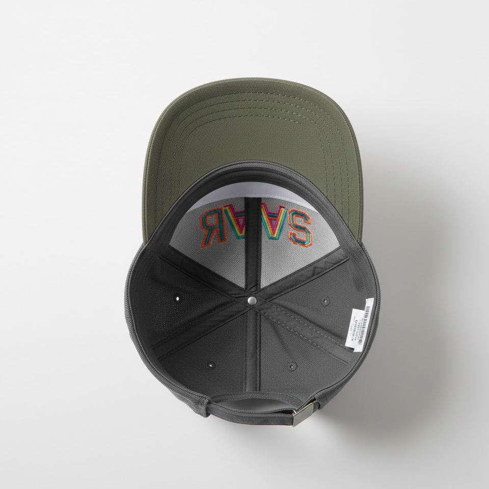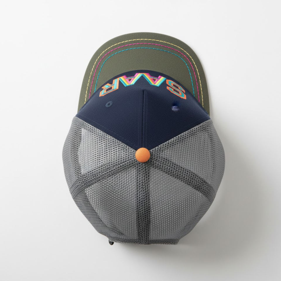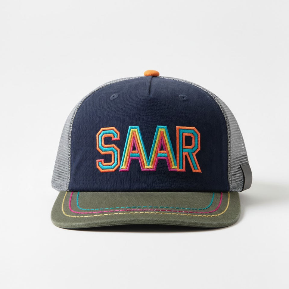 Custom Logo SAAR 3D Embroidered Sporty 6-Panel Navy Blue & Grey Snapback Cap with Contrast Stitching Common