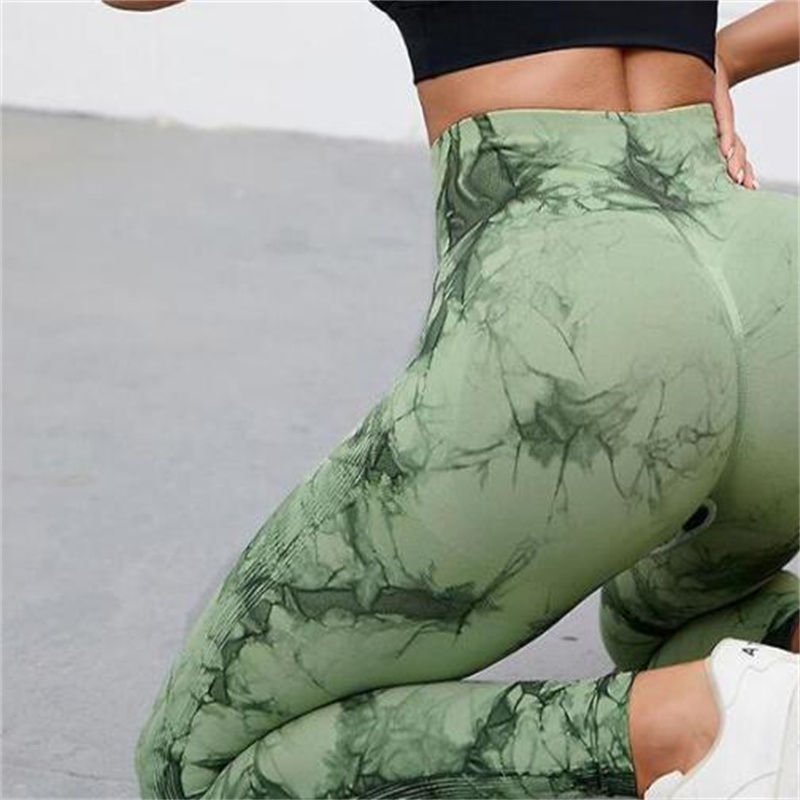 Custom Logo Seamless Fitness Leggings Soft Tie Dye Solid Color Workout Tights with Logo Wearable Yoga Gym Pants Solid Pattern