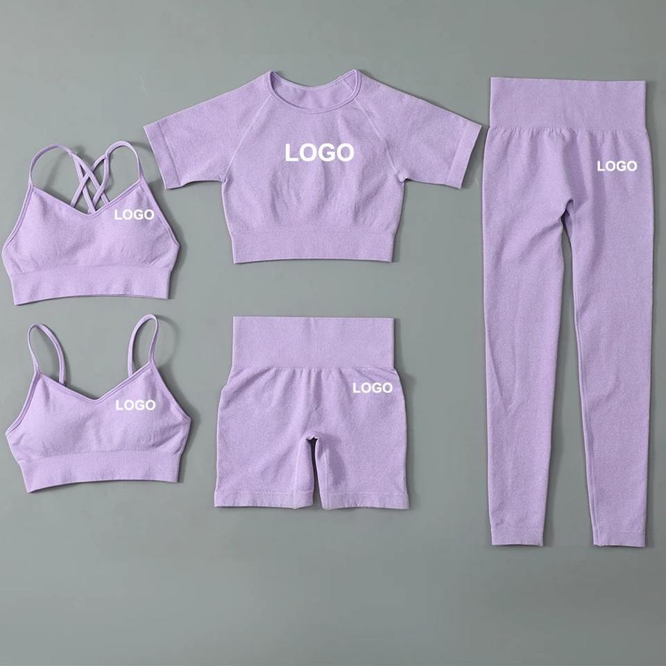 Custom Logo Seamless Women Yoga Set Workout Sportswear Gym Clothes Fitness Long Sleeve Crop Top High Waist Leggings Sports Suit