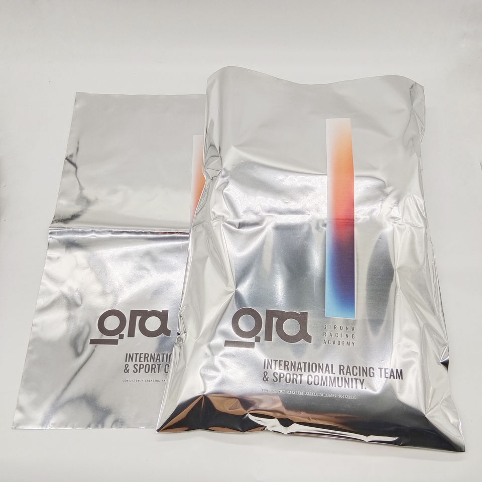 Custom Logo Self Seal Adhesive Strip Silver Clothing Shipping Bags Silver Poly Package Bags Metallic Aluminum Foil Poly Mailings