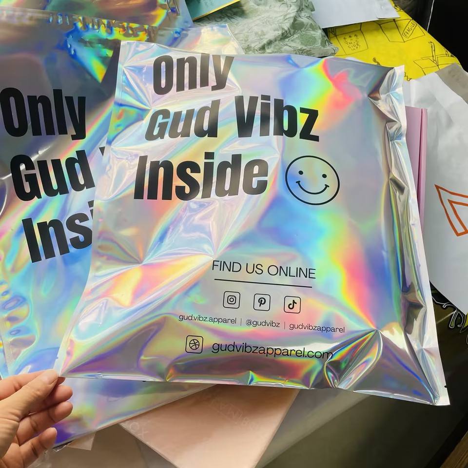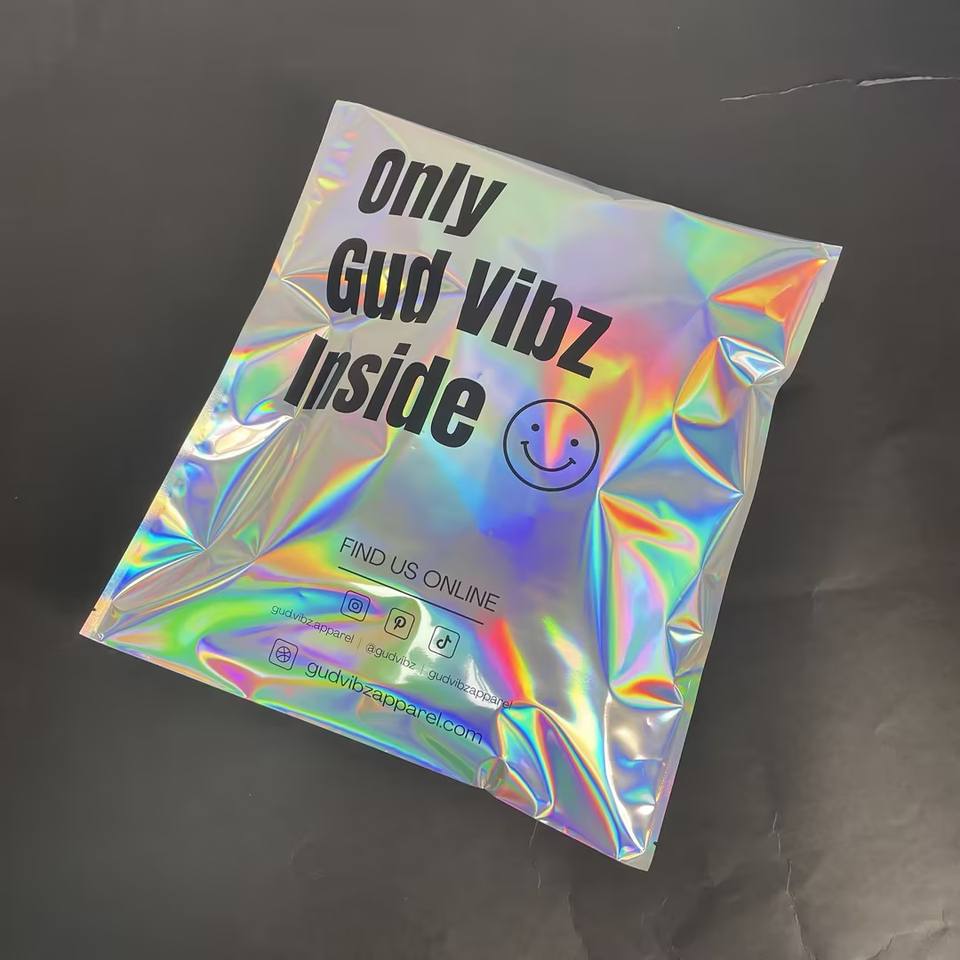 Custom Logo Silver Holographic Eco-Friendly Poly Bag with Laser Film Self-Adhesive Sealing for Clothing & Shoes