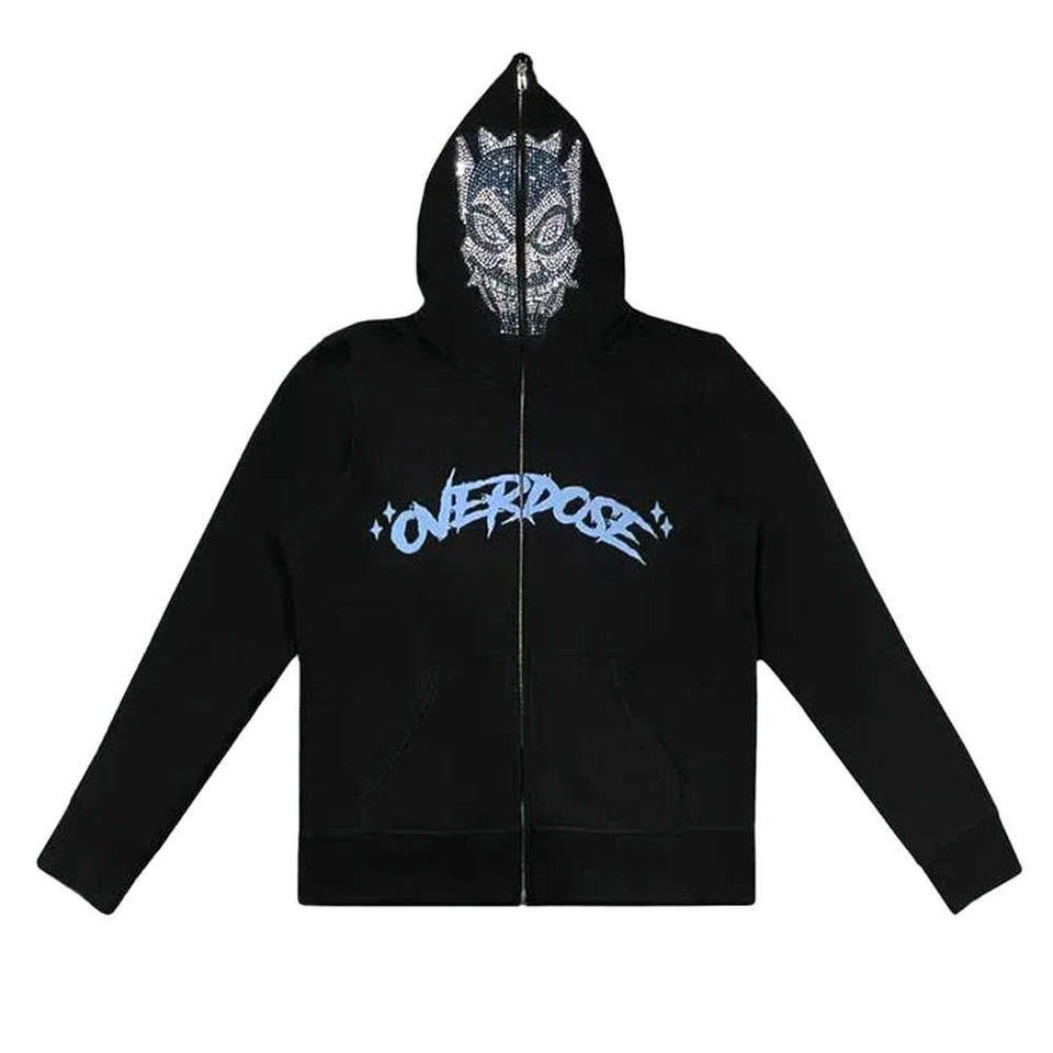 Custom Logo Skeleton Thick OEM High Quality Material Hoodie Wholesale Rhinestone Print Full Face Zip up Hoodies & Sweatshirts