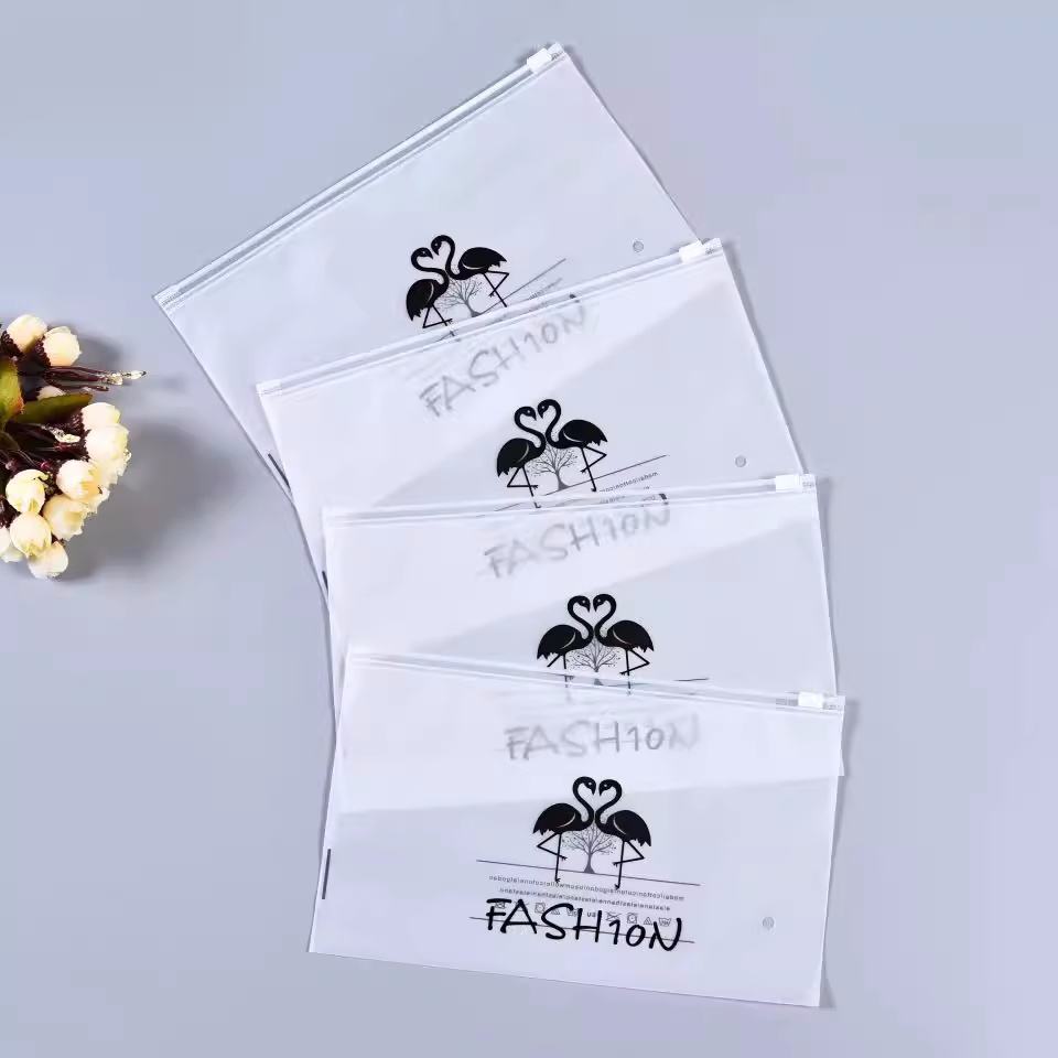 Custom Logo Slide Matte/ Frosted Zipper Plastic Bag Clear Clothing Tshirt Poly Zip Lock Bag With Logo