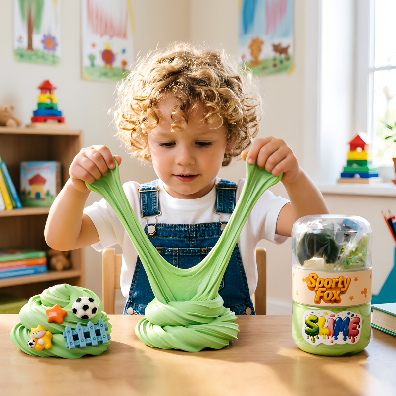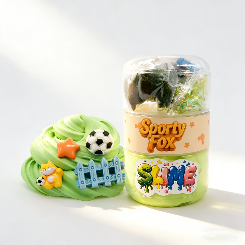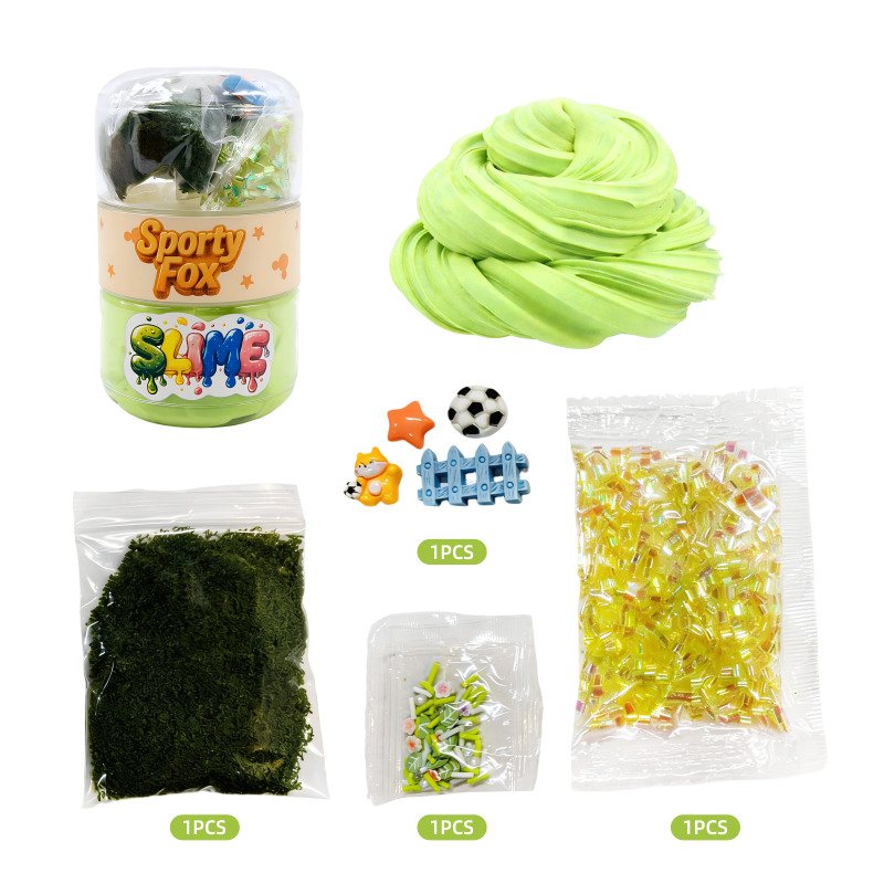 Custom Logo Slime Kit with Football Fox Charm & Glitter Accessories Non-Sticky Kids Slime Wholesale Factory