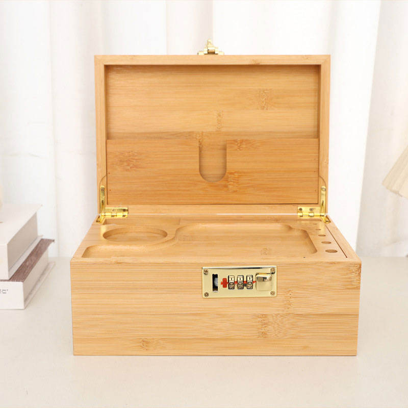 Custom Logo Smell Proof Stash Box Smoking Accessories Bamboo Eco-friendly Sliding Rolling Tray Large Storage Box With Jar