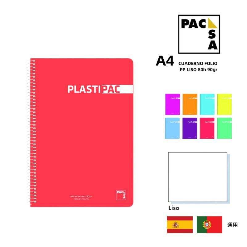 Custom Logo Smooth Folio Notebook 80h 90g PP Plastic Cover A4 Size Soft Style Printed Spiral-Bound Paper for School Office Use