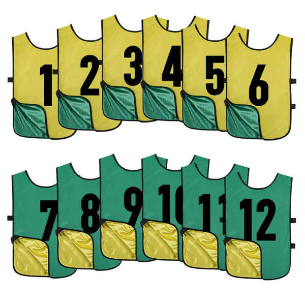 Unisex Youth Reversible Soccer Football Training Vest Heat-Transfer Printed Crew Neck Custom Logo Green Polyester Pinnie Players