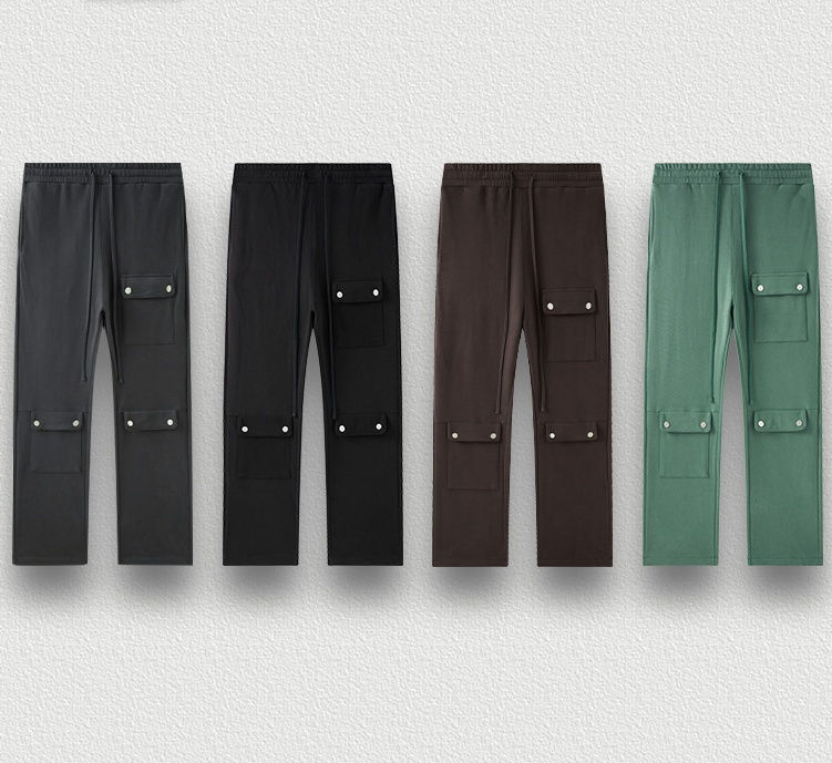 Custom Logo Solid Color Oversize Pants Fleece Hip Hop Style Multiple Pockets Decoration Sweatpants With Drawstring Pants for Men