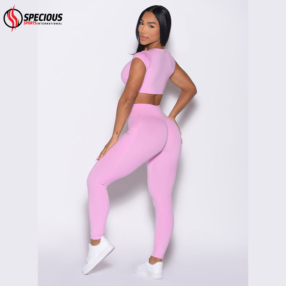 Custom Logo Solid V Shape No Front Seam High Elastic Waist Breathable Four-Way Stretch Quick Dry Yoga Leggings Green Gym Women