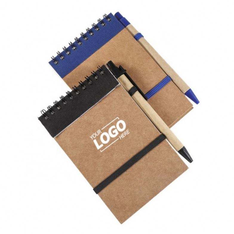 Custom Logo Spiral Notebook Set with Black Ink Pen - Personalized for School, Office, Home & Promotional Gift