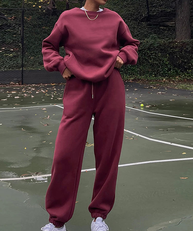 Custom Logo Sportswear Sweatsuit Workout Fitness Fleece Plus Size Sweatshirt and Sweatpants Jogger Sets Tracksuit for Women