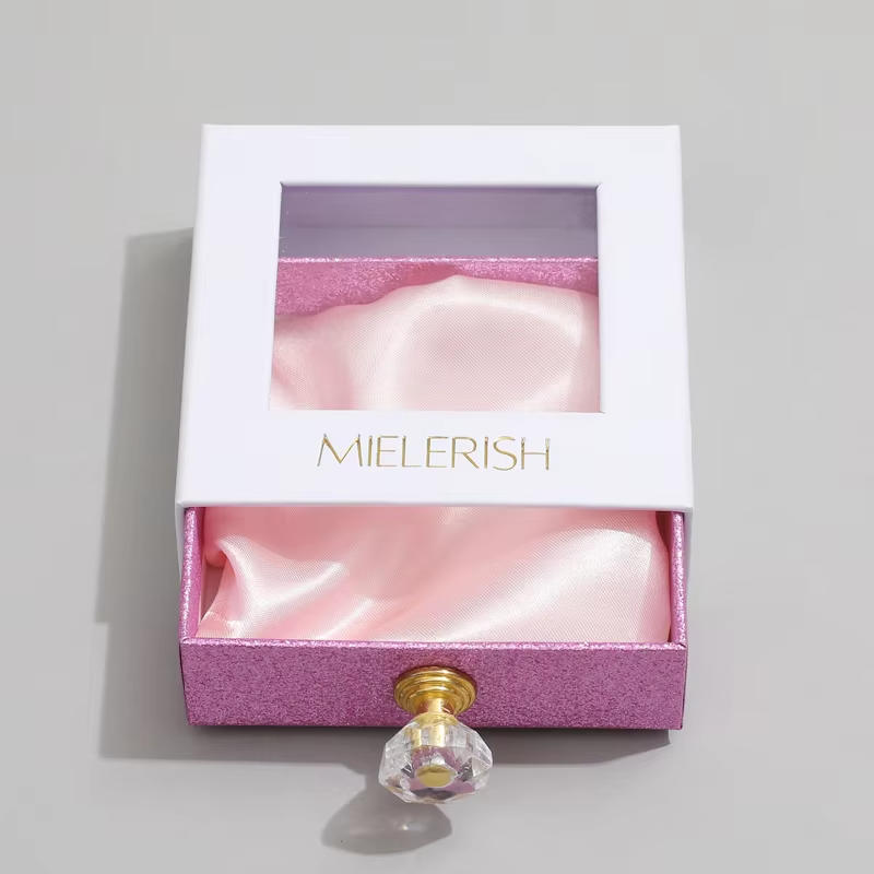 Custom Logo Square Paper Drawer Ring Jewelry Box with Diamond Handle PVC Window Necklace Earring Bracelet Packaging Gift Storage