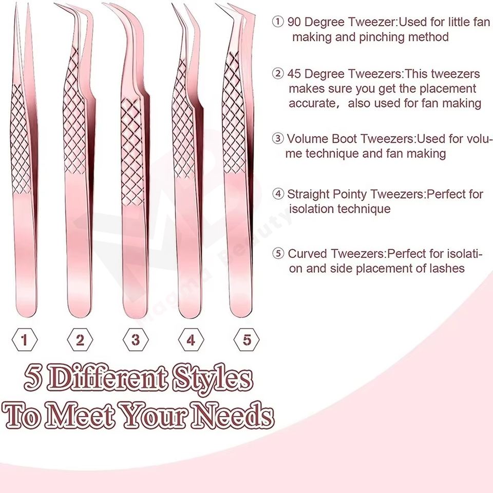 Custom Logo Stainless Steel Lash Tweezers Eyelash Extension Fiber Tip Tweezers with Pointed Tip Private Label