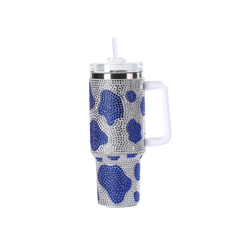 Custom Logo Stainless Steel Travel Water Bottle Coffee Mug Leopard 40oz Tumbler with Handle