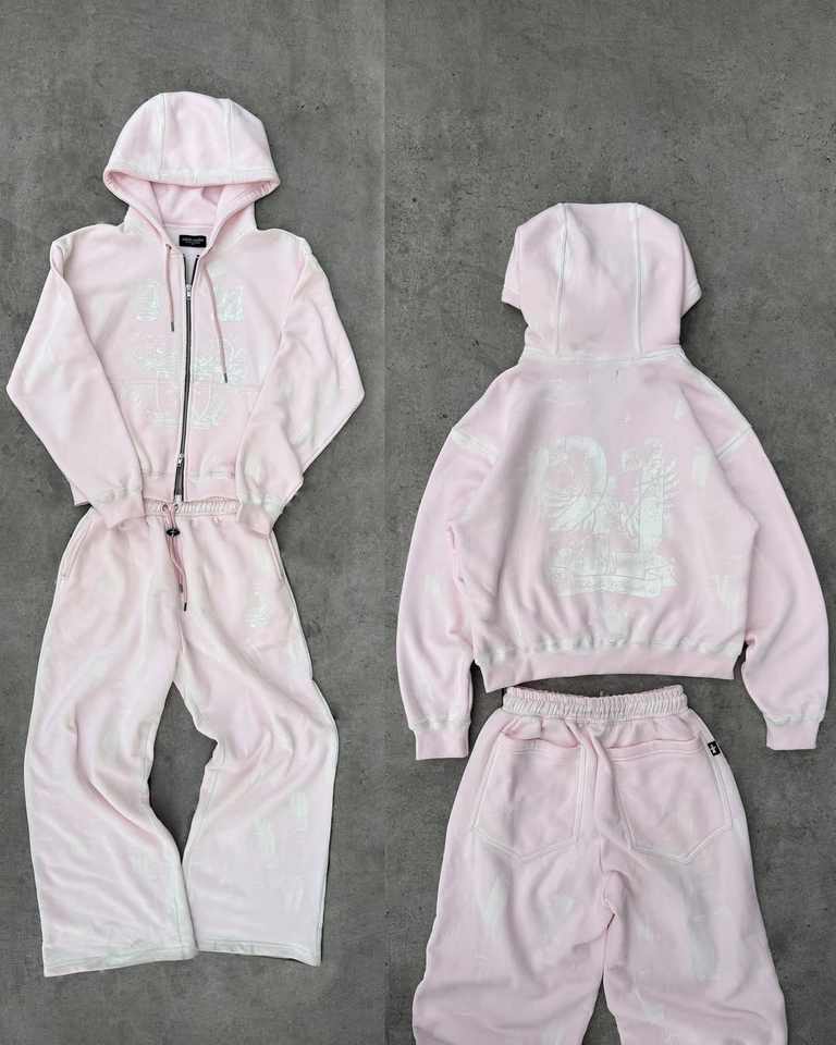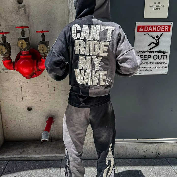 Custom Logo Streetwear Embroidery Acid Wash Hoodies Unisex Stacked Flared Sweat Pants Track Suits 3D Patch Hoodie and Jogger Set