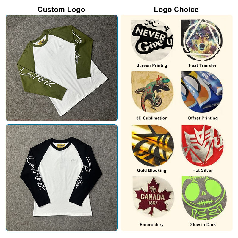 Custom Logo Streetwear Graphic Pure Cotton Digiatl Print Long Sleeve Shirt Men's Raglan Sleeves Loose Fit T-Shirt No reviews yet