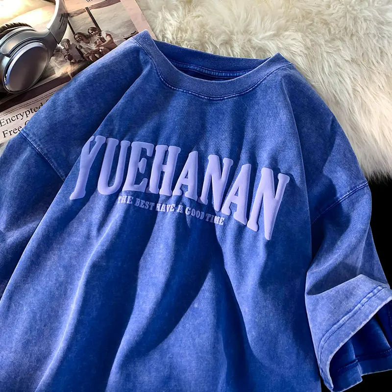 Custom Logo Streetwear Oversized Heavy Cotton Men's t-shirt High Quality Graphic Print Acid Wash Vintage tshirt t shirt