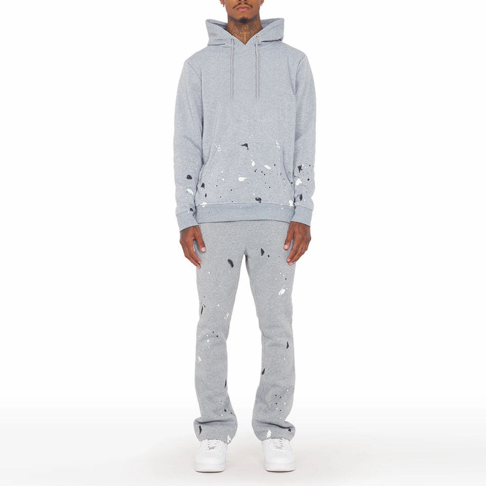 Custom Logo Streetwear Solid Color Blank Men Flared Tracksuits New Arrival Acid Wash Embroidery Patch Men Tracksuit