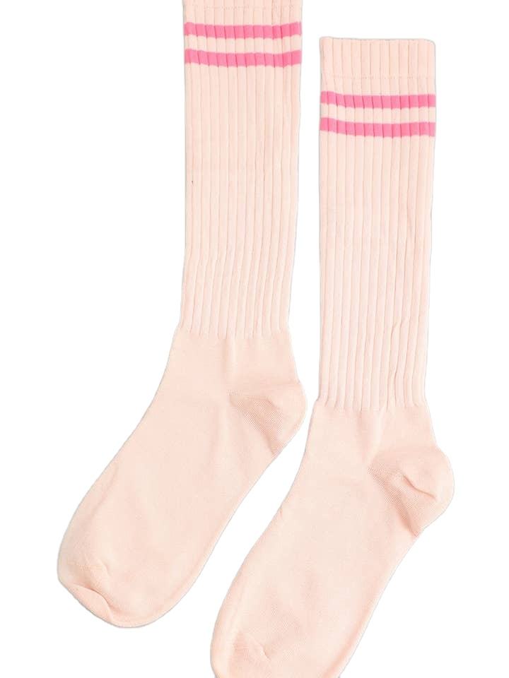 Custom Logo Striped Cuff Knee-High Socks Classic Comfortable and Style Socks for School Girl Lady Bulk Order Vietnam Factory