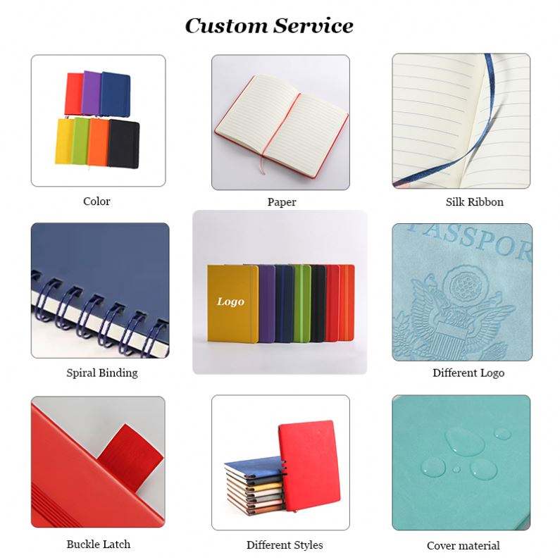 Custom Logo Student Study Printed PU Hardcover Notebooks Promotional Advertising Leather Business A5 Size Notebook with Logo