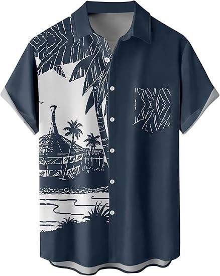 Custom Logo Summer Beach Hawaiian Satin Cotton Short Sleeve Button Down Shirt for Men for Work & Vacation
