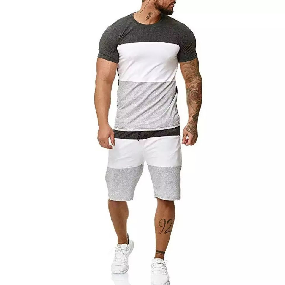 Custom Logo Summer Sportswear Plus Size Men's Set Cotton O Neck Jogging Shorts and Shirt With Custom Printing Sweat Blank