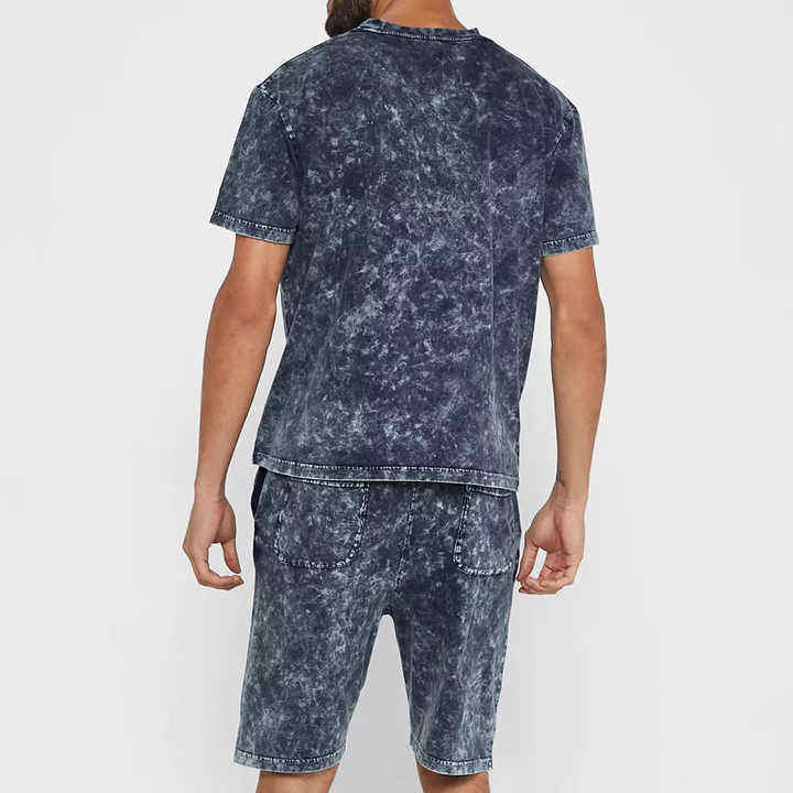 Custom Logo Summer Tracksuit Set 300 GSM Washed 100% Cotton T-Shirt Shorts with Silk Screen Printing