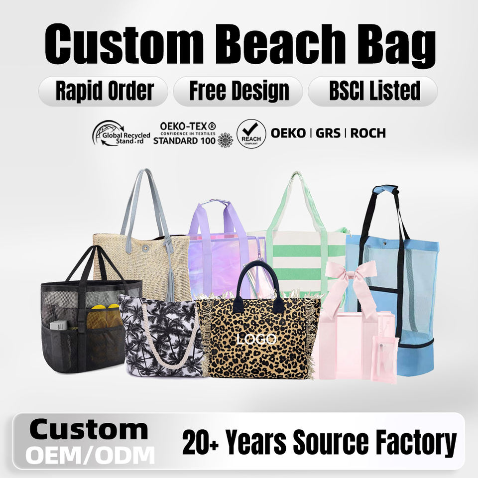 Custom Logo Summer Vibes Portable Eco-Friendly Women's Classy Cotton Canvas Tote Bag with Zipper for Beach & Daily Use
