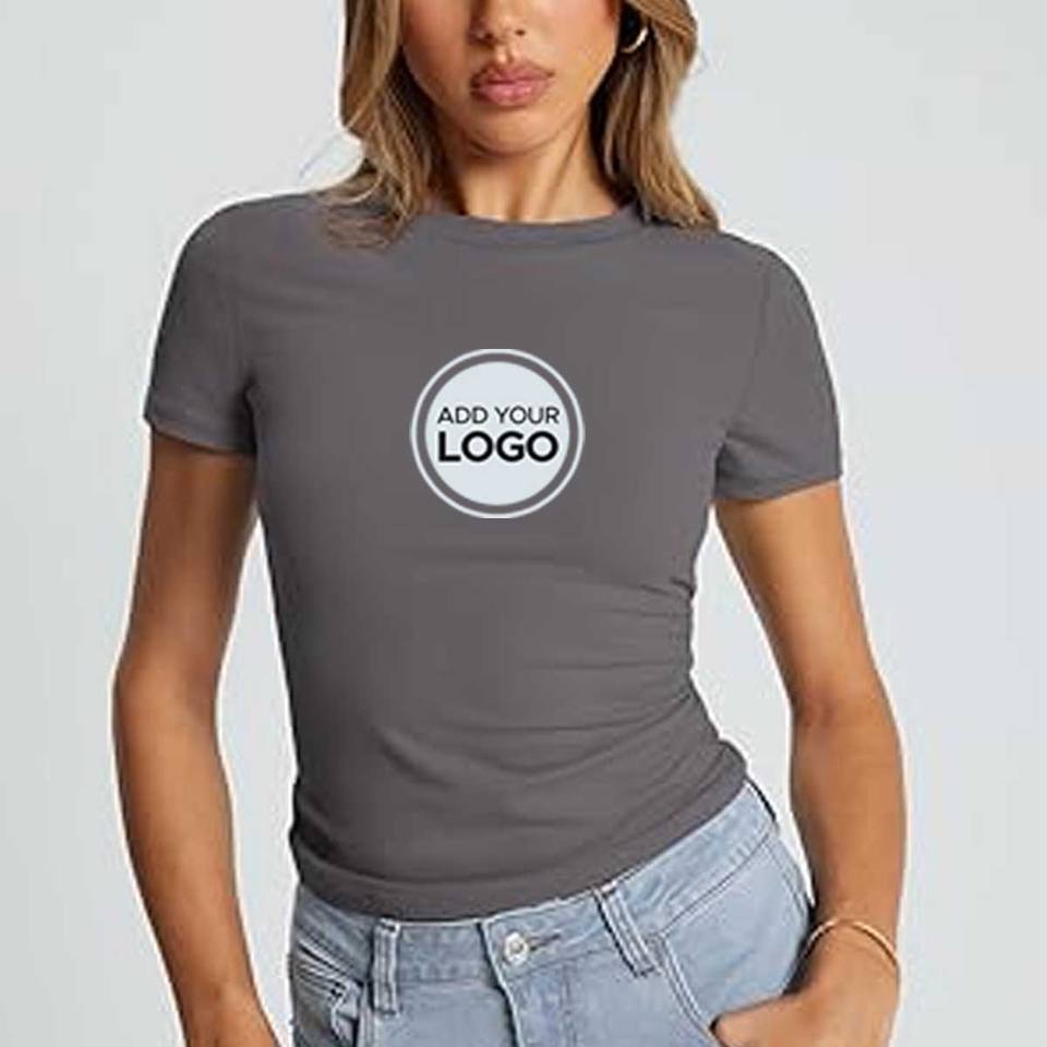 Custom Logo T Shirt Women's Short Sleeve T Shirt Crew Neck 2025 Summer Casual Tee Blouses Tops