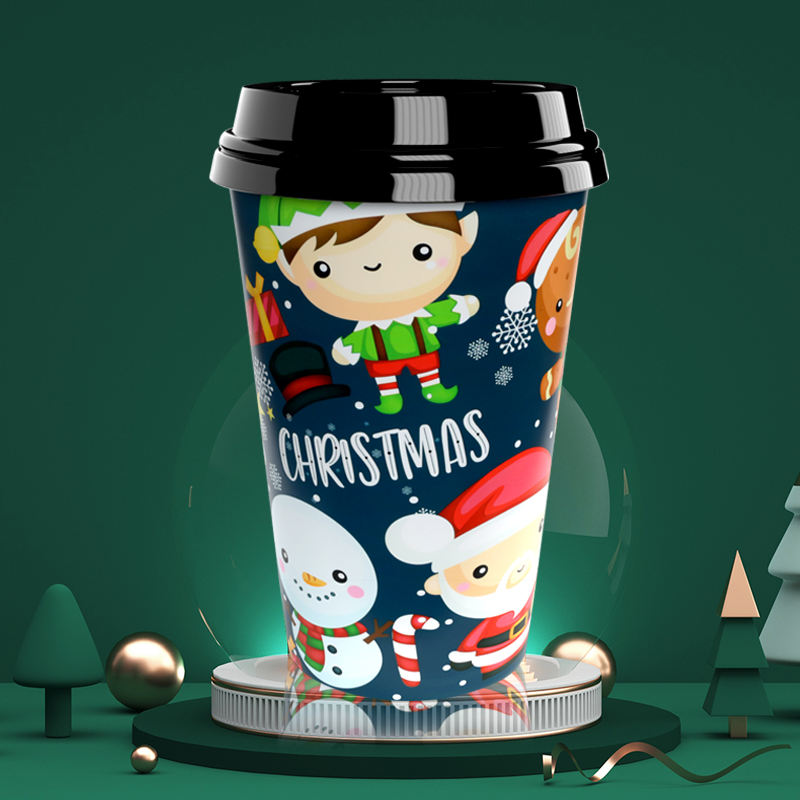 Custom Logo Takeaway Disposable Double Wall PET & PP IML Printing Hard Injection Cup Boba Coffee Cups with Lids