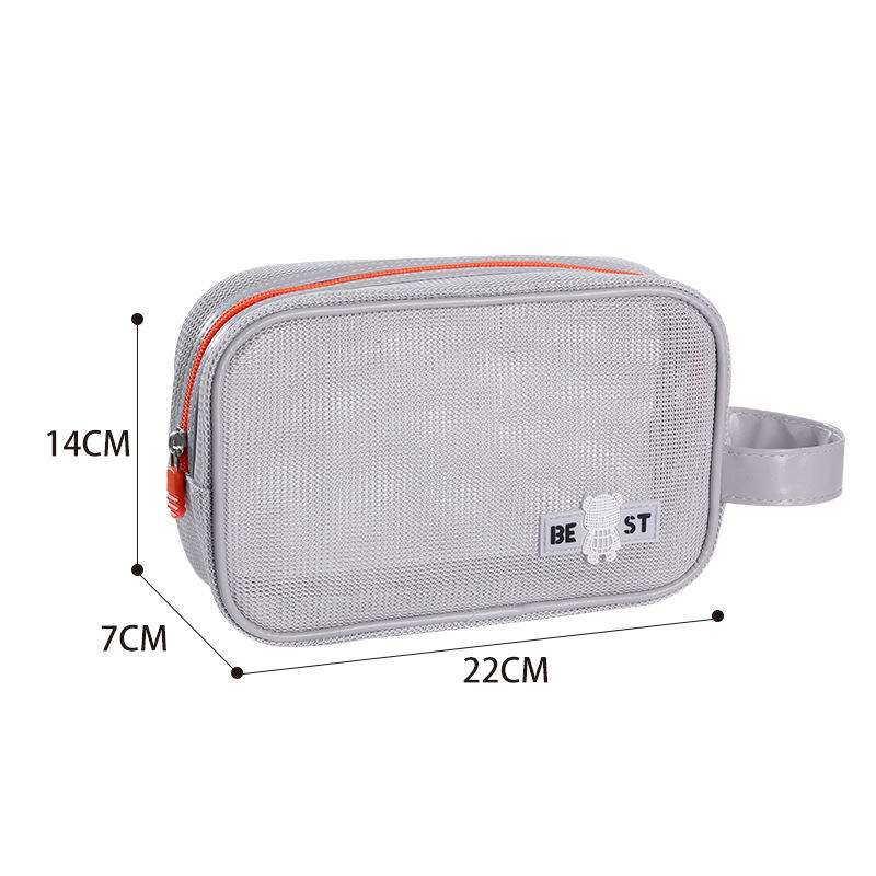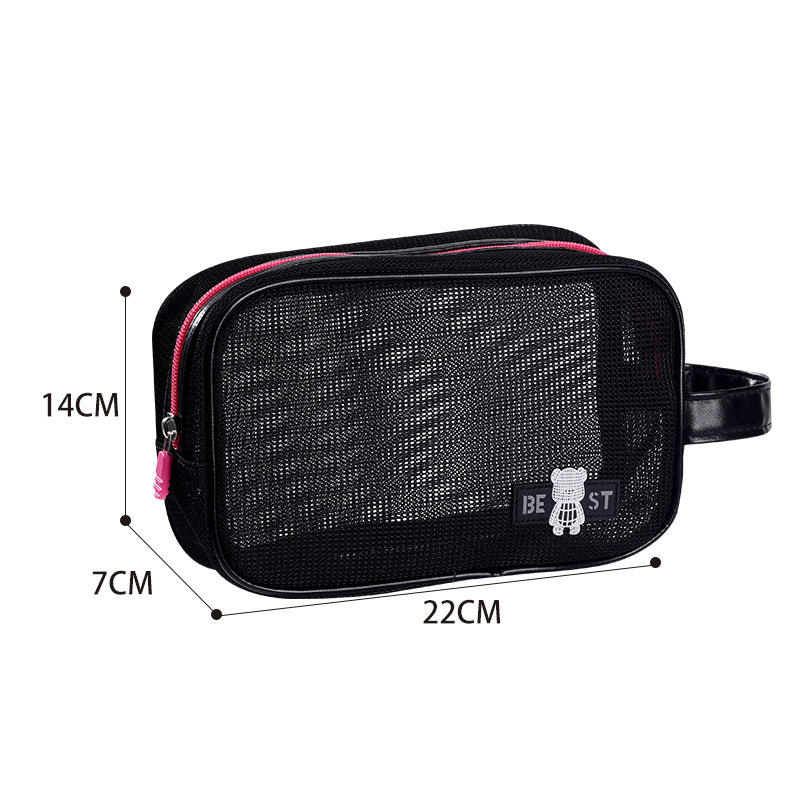 Custom Logo Transparent Travel Makeup Cosmetic Bag Wash Zipper Outdoor Use Portable Nylon Mesh Makeup Bag