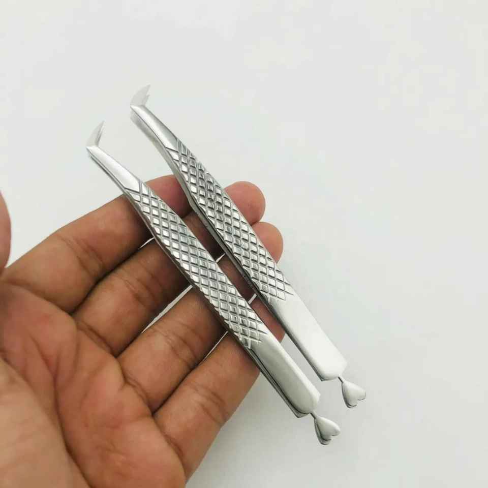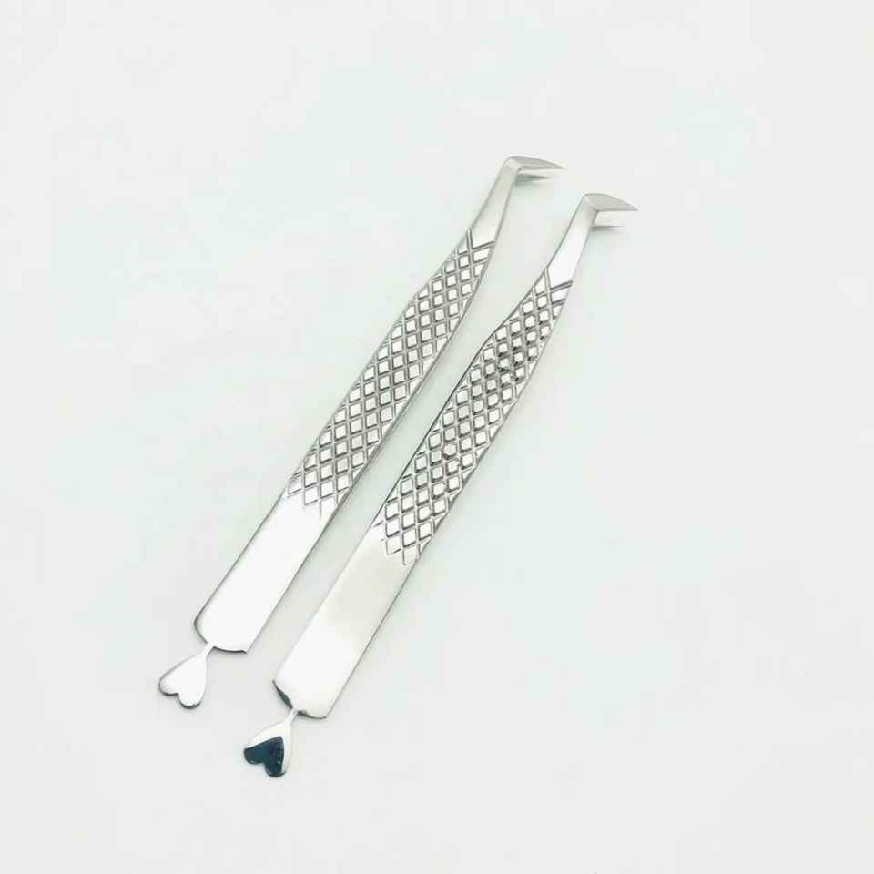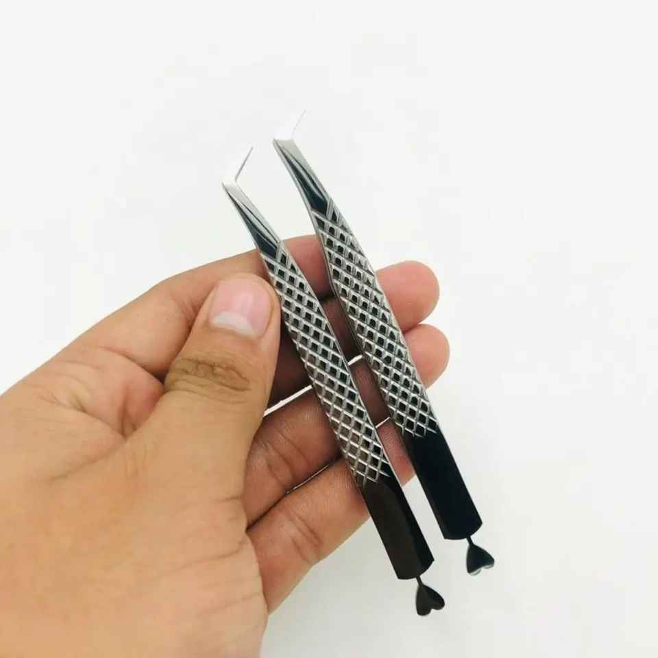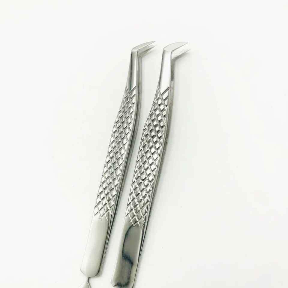 Custom Logo Tweezers Volume Fiber Tip Private Label Stainless Steel Tweezer Eyelash Extension Tweezers