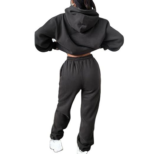 Custom Logo Unisex Slim Fit Breathable Winter Fleece Plus Size Casual Solid Hoodie and Jogger Tracksuit for Women