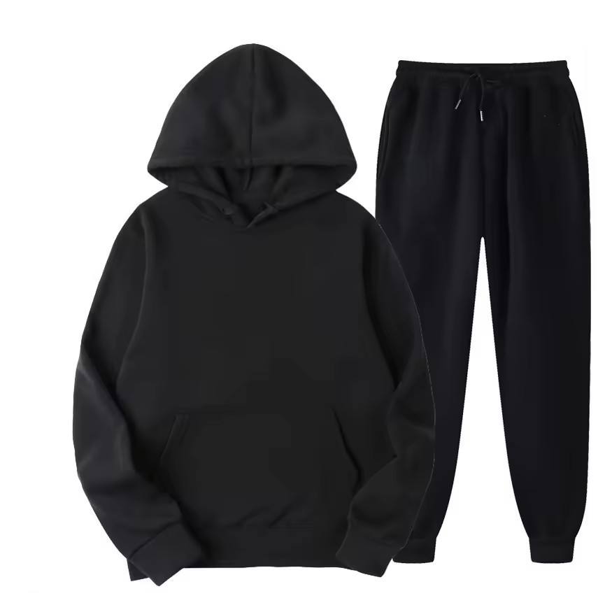 Custom Logo Unisex Winter Oversized Streetwear Solid Track Suit Zip-Up Hoodie Set Blank Sweatsuit Joggers