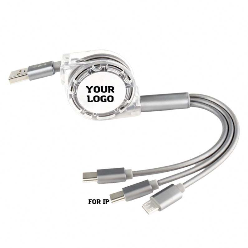 Custom Logo Universal Retractable 3 in 1 Multi Multiple 3in1 USB Charging Charger Cable