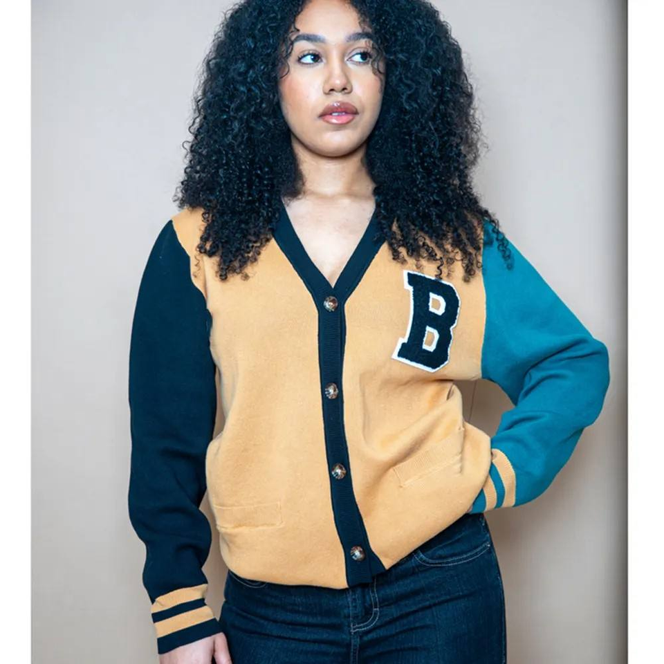 Custom Logo V-Neck Sorority & Fraternity Cardigan Acrylic Knit University & College Cardigan Sweater with Chenille Embroidery