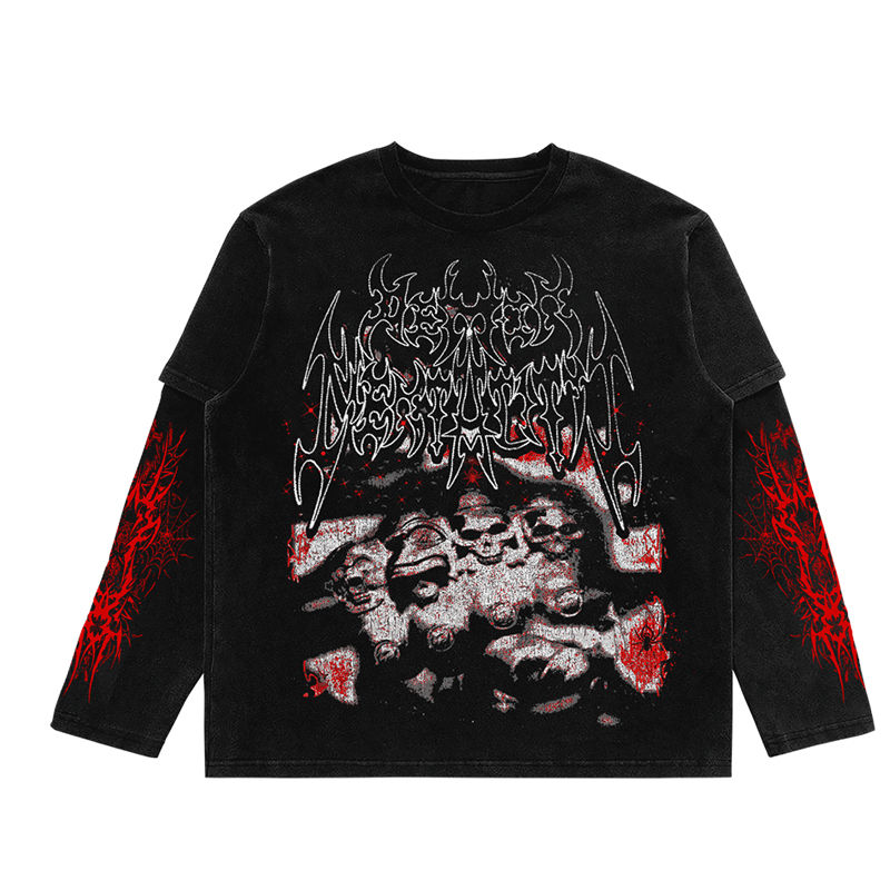 Custom Logo Vintage Long Sleeve T Shirt Acid Washed Cotton Graphic Screen Print Double Layered Long Sleeve Mens T Shirt
