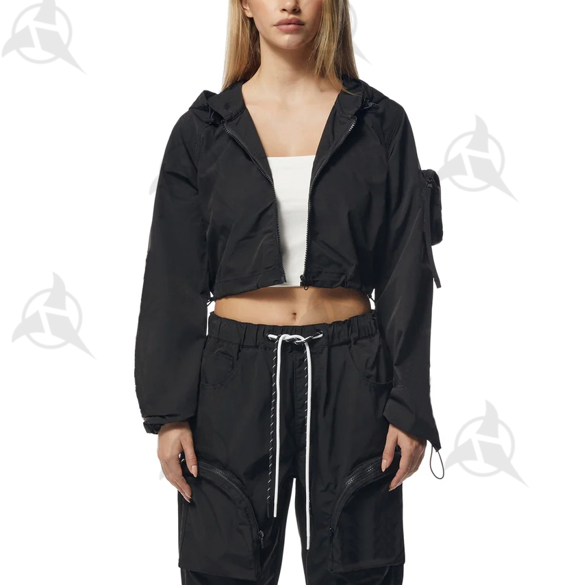Custom Logo Vintage Printed Women's Winter Plus Size Nylon Full Length Zip Windbreaker Tracksuit Cargo Pants Set Streetwear