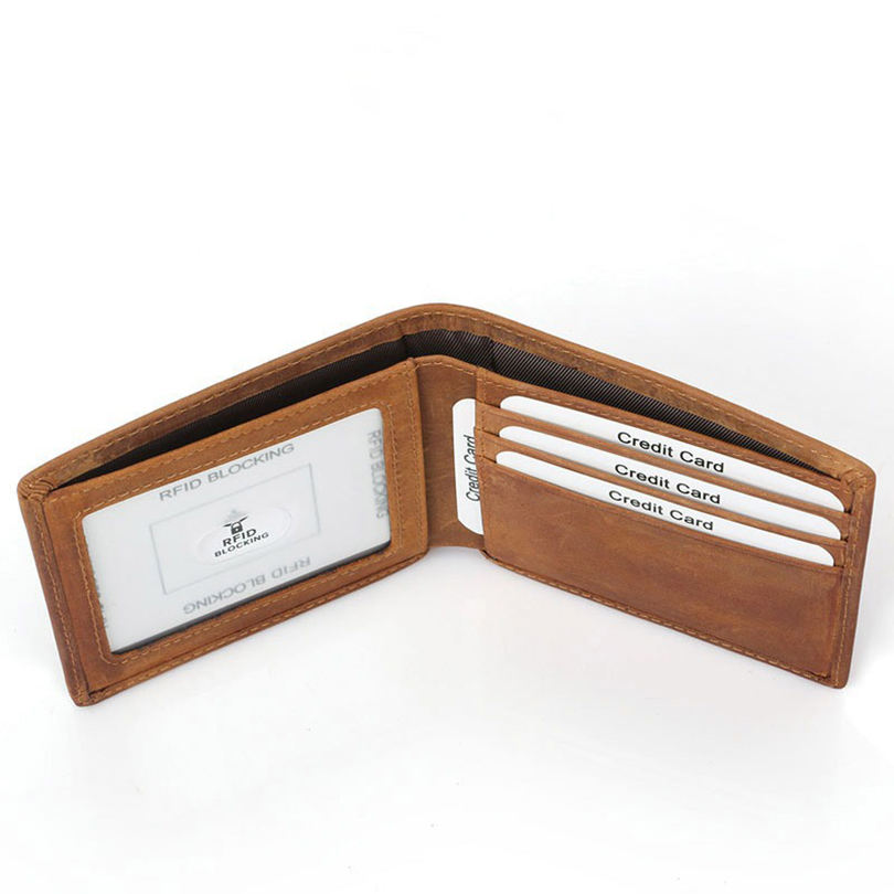 Custom Logo Vintage Style Custom Branding Wholesale Men Genuine Cow Leather Wallet Vintage Crazy Horse Wallets