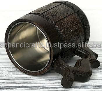 Logo Vintage Wooden Coffee Mug Big Belly Beer Mug Wooden Drinking Mug by Tayyab Handicraft .com