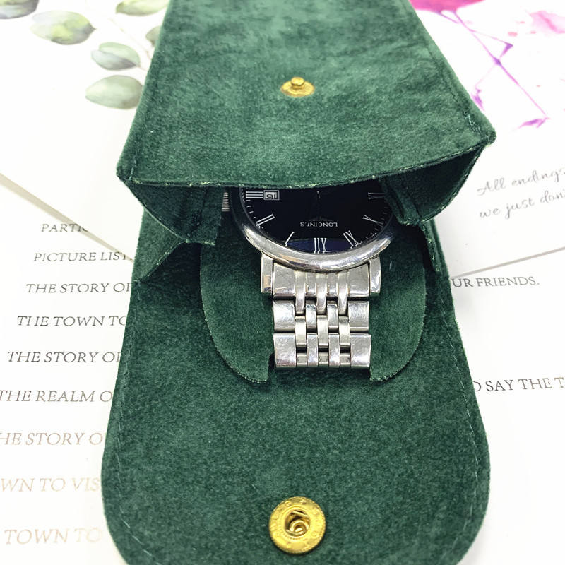Custom Logo Watch Pouch Case Gift Velvet Envelop Snap Button Men Cardboard Insert Travel Bracelet Storage Bag and Organizer