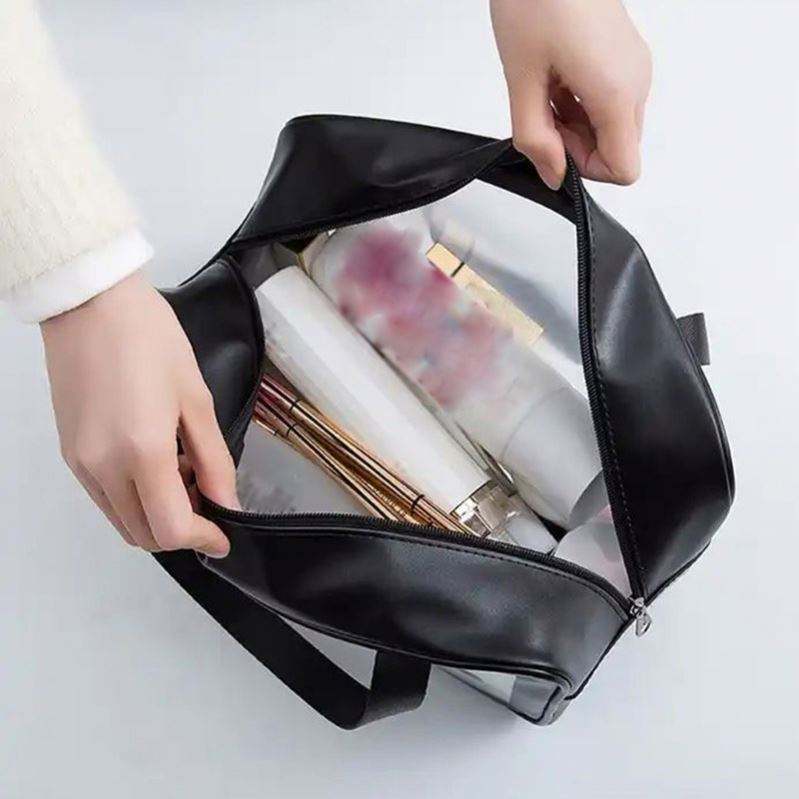 Custom Logo Waterproof Pink Girl Transparent Toiletry Pouch PU PVC Wash Bag Travel Clear PVC Cosmetic Bag Makeup Bag