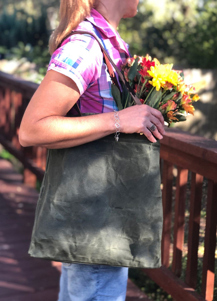 Custom Logo Waxed Canvas Tote Bag with Leather Straps Handmade Durable Stylish Large Shopper Travel Handbag LCT-0155