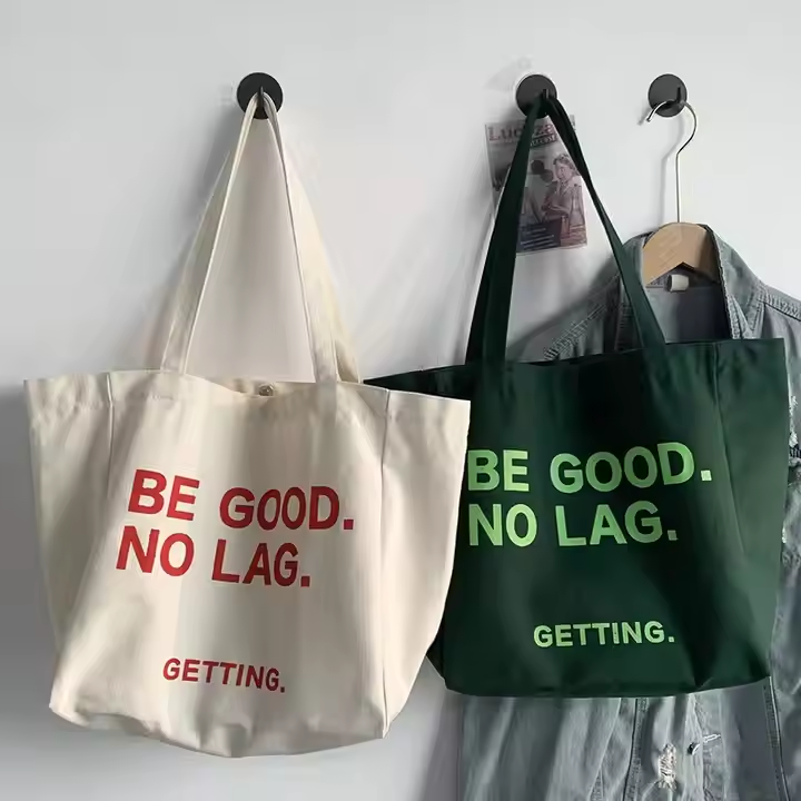 Unisex Custom Logo Weekender Canvas Cotton Tote Bag with Reinforced Letter Handle Unique Gift Idea for Women and Men