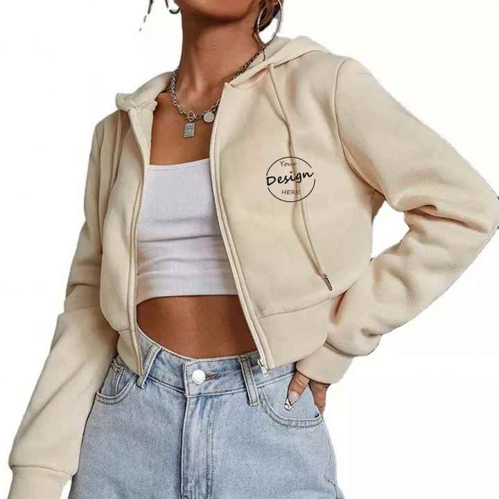 Custom Logo Wholesale Crop Tops Women Hoodie Screen Print Long Sleeve Blank Thick Winter Sports Gym Crop Zip up Hoodie Woman