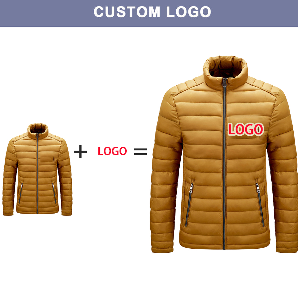 Custom Logo Wholesale Outdoor Winter Warm Canvas Stand Collar Front Logo Bubble Puffer Jacket for Men