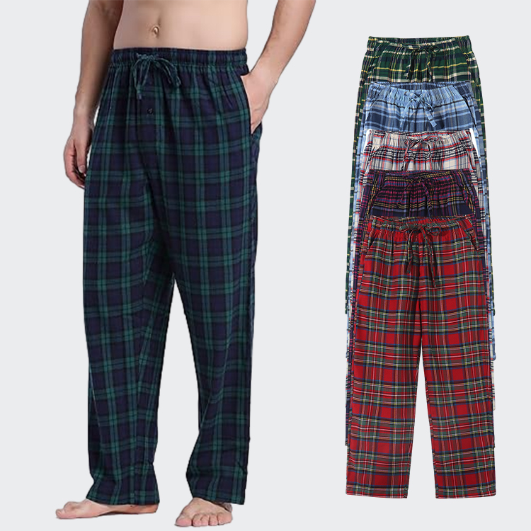 Custom Logo Winter Casual Straight Sleepwear Elastic Waist Lounge Pants Soft Men's Worsted Pajama Pants