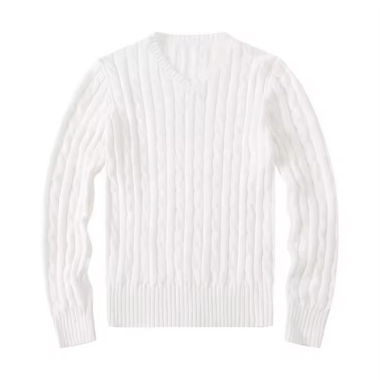 Custom Logo Casual Winter Fashion Solid Women Pullover Knit Embroidered V-Neck Long Sleeve Jacquard Cable Knitted Breathable