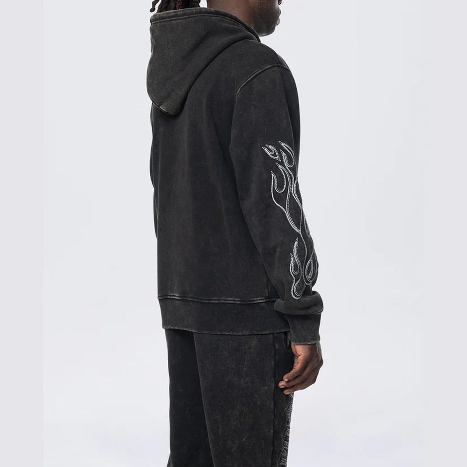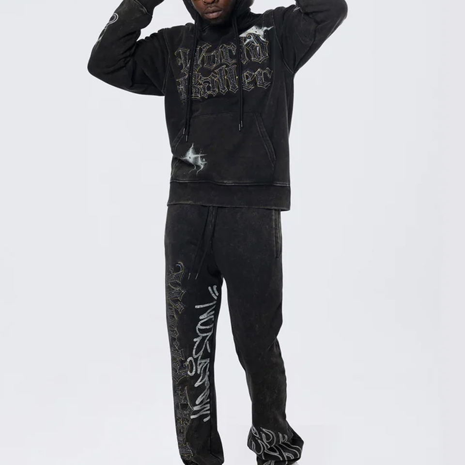 Custom Logo Winter Full Face Zipper Acid Wash Rhinestone Reflective Men's Hoodie with Fleece Fabric and OEM Service
